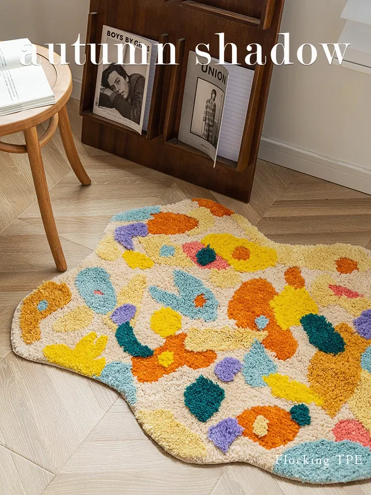 不規則なデザインの防水防汚リビングカーペット - モダンでシンプルなスタイル、くつろぎのソファマット、クローゼットやメイクチェアにもぴったり!おしゃれな空間を演出します。
