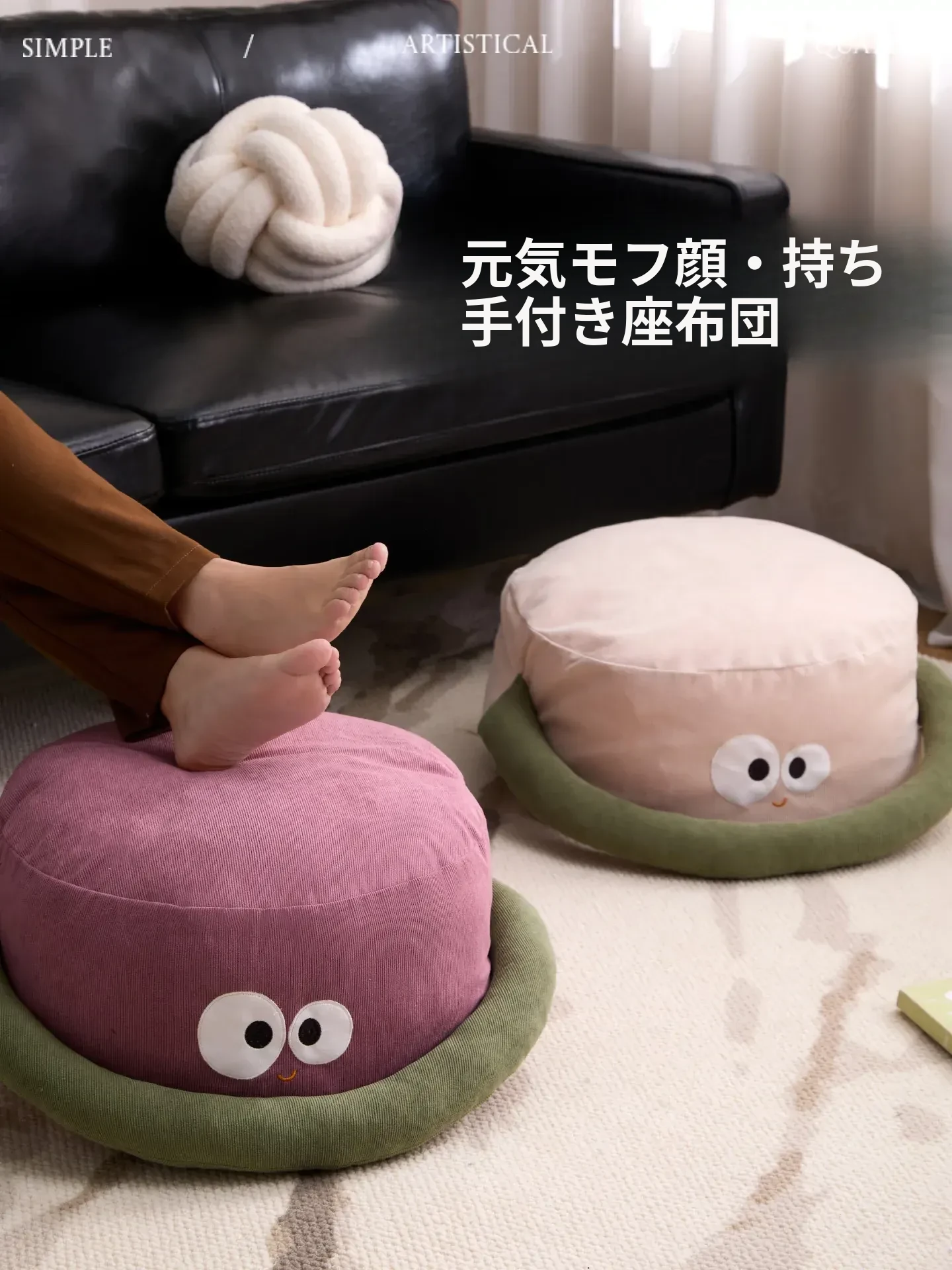 カヴィオセンのかわいいハンドル付きクッションソファ、座布団とラグの完璧なコンビネーション!リラックスできるラウンジスタイルで、どんな部屋にもぴったりフィット。おしゃれで快適な暮らしを手に入れよう!