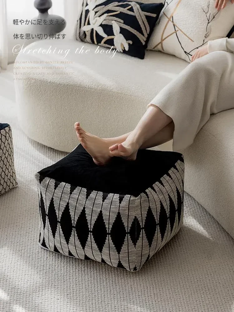 ヴィンテージ風のリビング用スクエア座布団 - おしゃれで快適な畳スタイルのクッション、厚手のソファ用フットスツール、洗濯可能!民宿やおしゃれな空間にぴったりなローチェア。