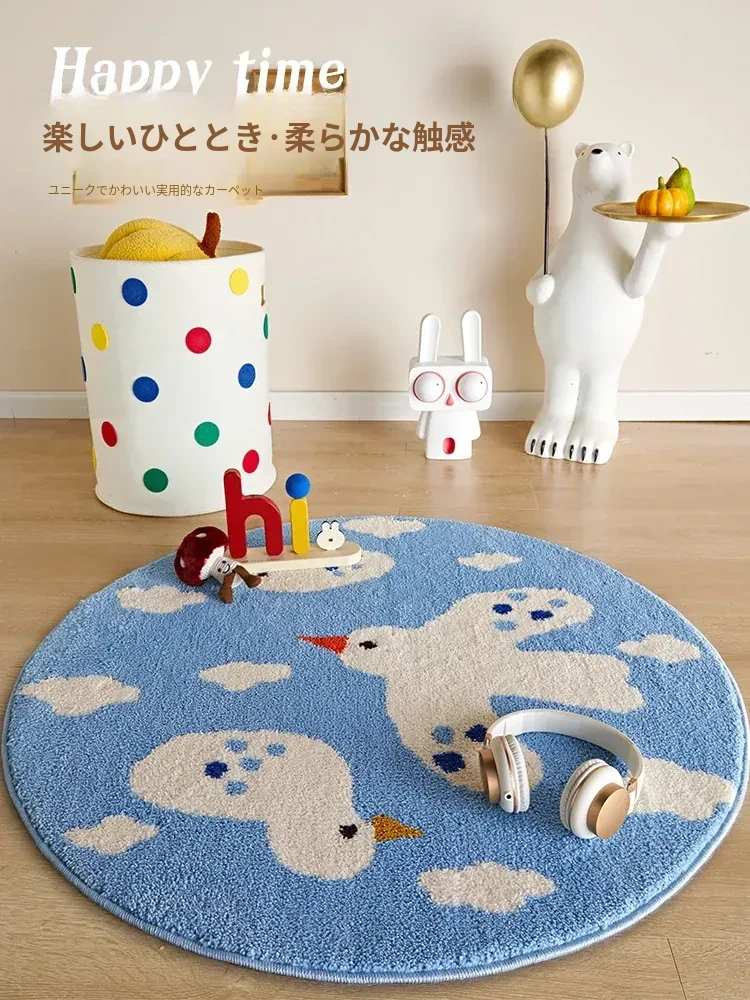 かわいいカートゥーンデザインのラウンドカーペット、ミルクシルク製で厚みがあり、子供部屋や寝室の読書エリアに最適!家庭用ベッドサイドマットとしても大活躍!お子様の快適な空間を演出します。