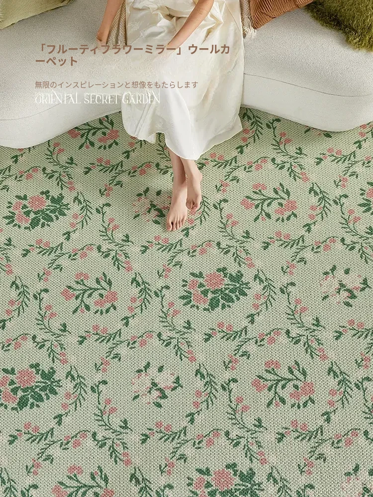 田園風のリビングにぴったり!ふんわりウールラグで、くつろぎの空間を演出。厚手で柔らかい、ソファや椅子の下に最適なカーペット。書斎や寝室にも最適な清新なデザイン。
