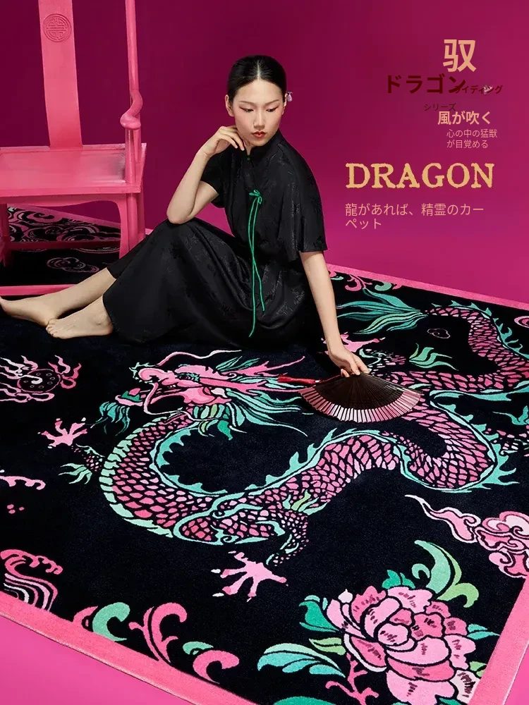 新中式スタイルの高級感溢れるリビングルームラグ - 中国風デザインで、書斎や寝室にもぴったり!手入れ不要で、ソファやテーブルの下に最適な軽奢マット。心地よい空間を演出します。
