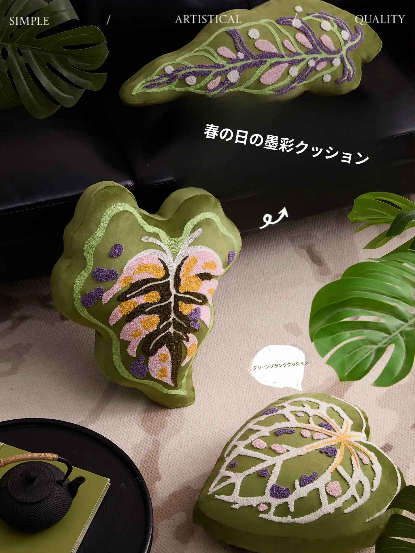 カビオセン異形リーフクッション - 高級感あふれるライトラグジュアリーソファクッション、クリエイティブなリビングルーム用バックパッドで、快適さとスタイルを両立!