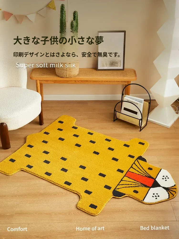 可愛らしい不規則なトラデザインのベッドサイドマット!リビングや子供部屋にぴったりのカートゥーンカーペット。遊びエリアに最適なユニークな形状と滑り止め機能付きで、安全に楽しく遊べます。