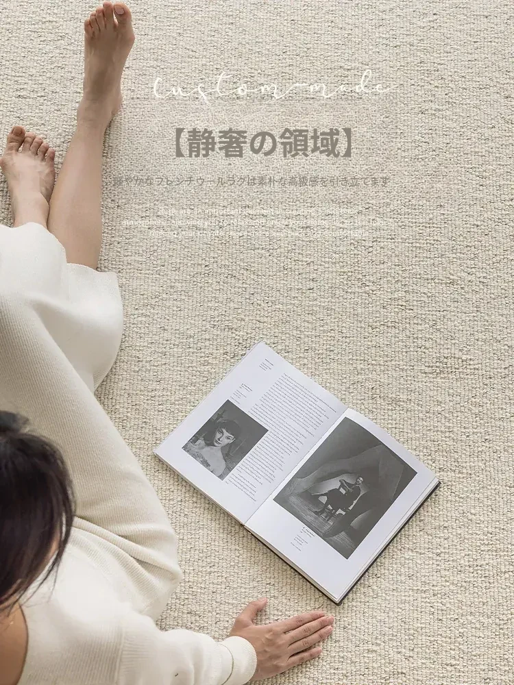 フランス風クリーム羊毛ラグ - 高級感溢れるリビングや書斎にぴったり!柔らかな肌触りで、ソファやベッドサイドに最適なリラックス空間を演出します。おしゃれなクローゼットやお部屋を一層引き立てるアイテム!