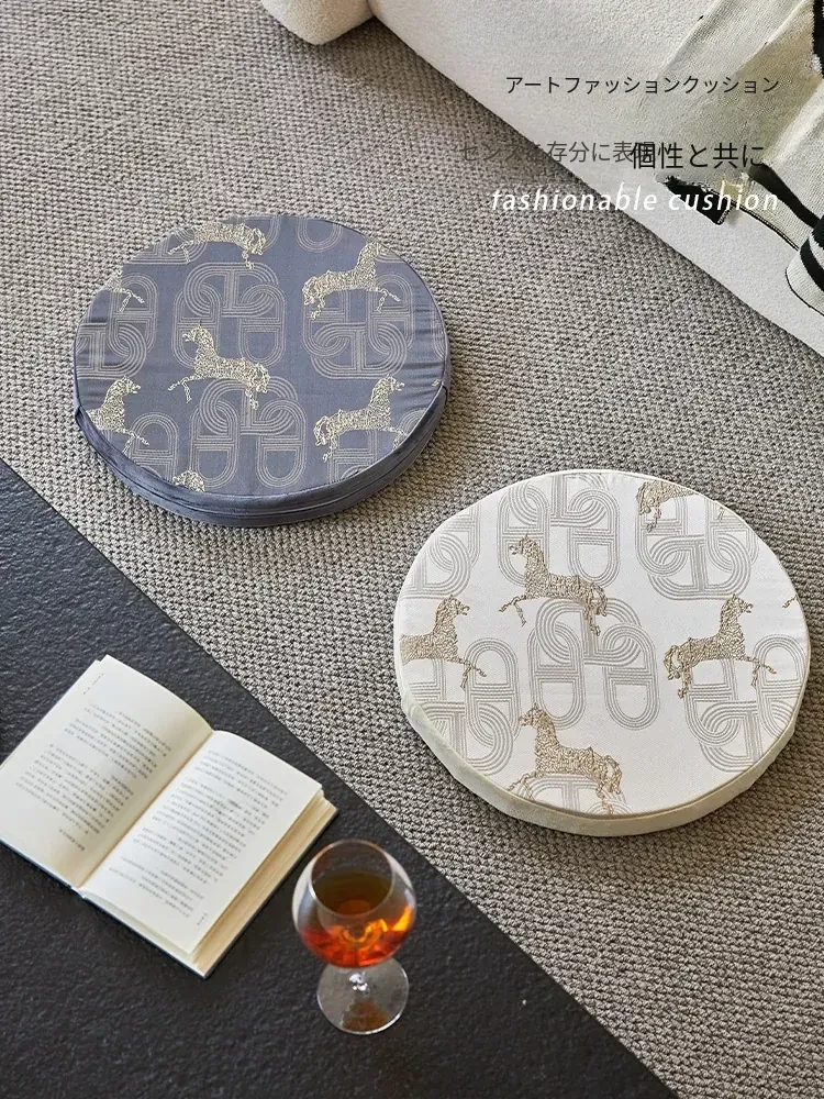 北欧スタイルの軽奢華クッション|シンプルな布製円形デザイン|オフィスや家庭に最適|コットンリネン素材|四季折々使える万能座布団!