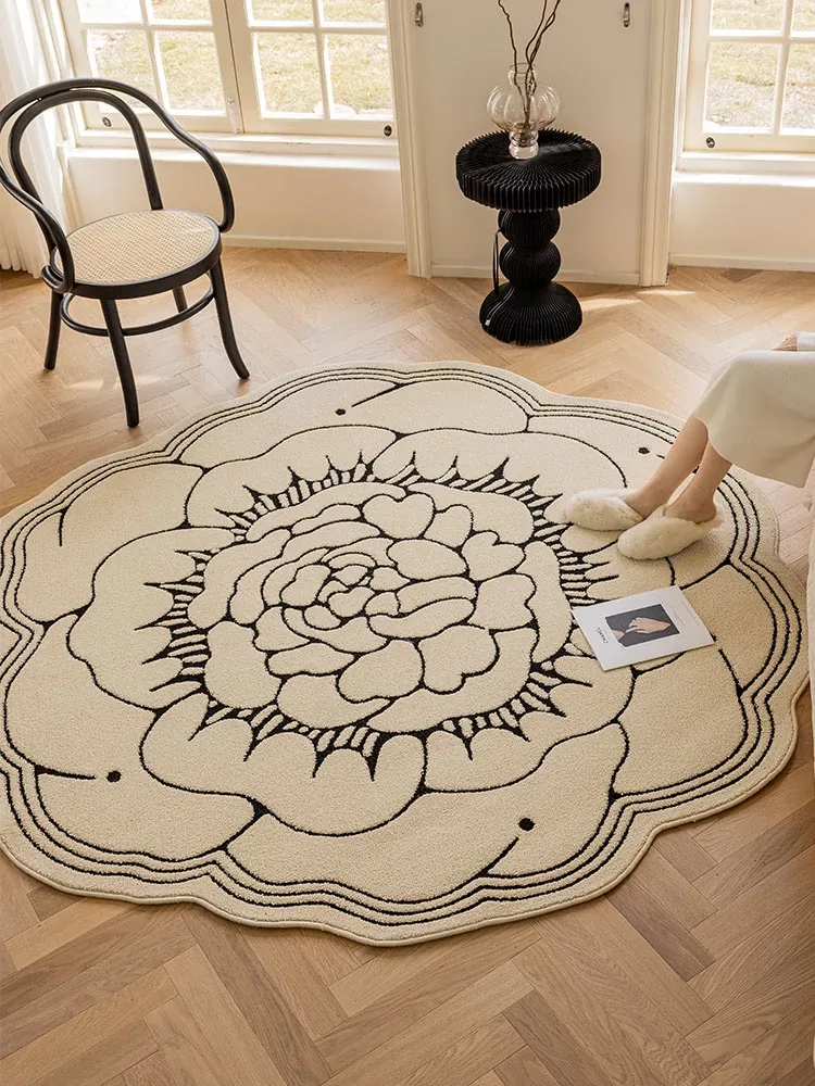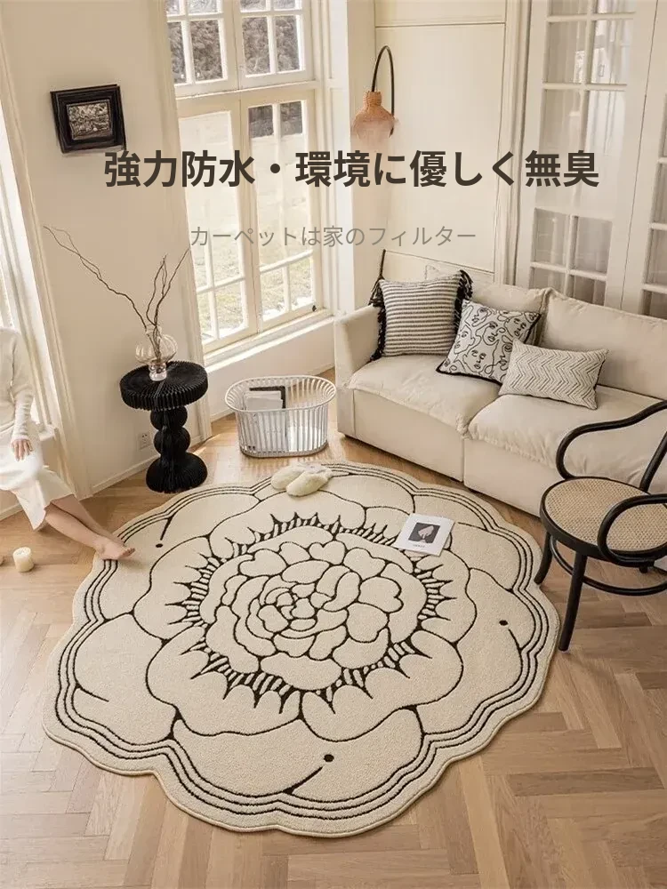 防水・汚れ防止!異形カメリアデザインのラグマット - 寝室・クローゼット・ベッドサイドにぴったり!お手入れ簡単で、リビングのソファやテーブルにも最適!