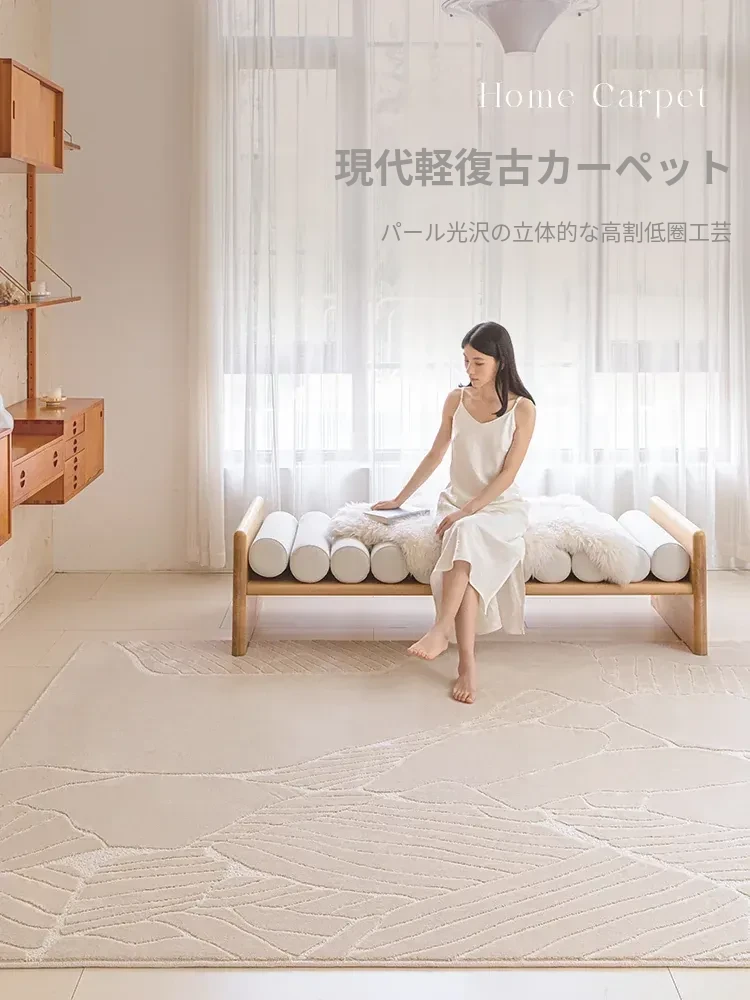 2026新作!高割低圈デザインのリビングカーペット - 寝室のベッドサイドにぴったり!お手入れ不要の防水マット、侘寂風でおしゃれに演出。滑り止め付きで安心!