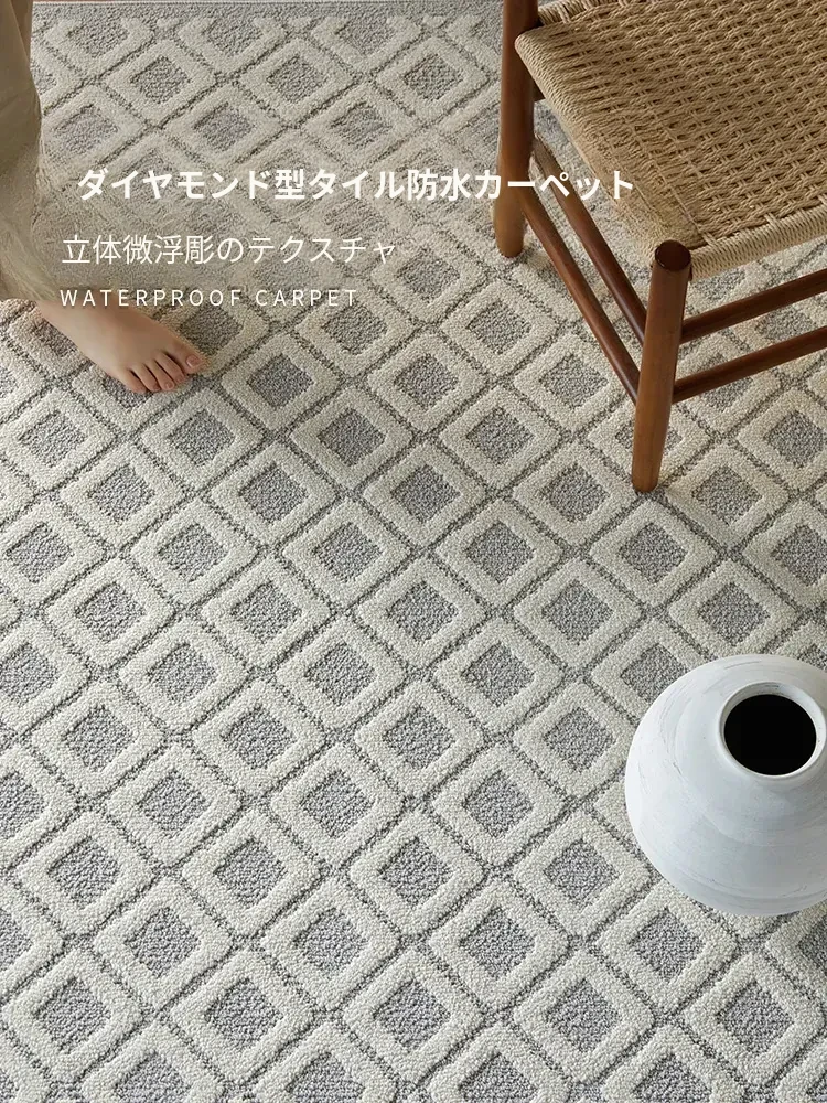 侘寂スタイルのインテリアにぴったり!高級感漂うリビング・書斎・ベッドサイド用防水・防汚カーペット。おしゃれなティーテーブルやソファに最適な軽やかなデザイン。あなたの空間を一層引き立てます!