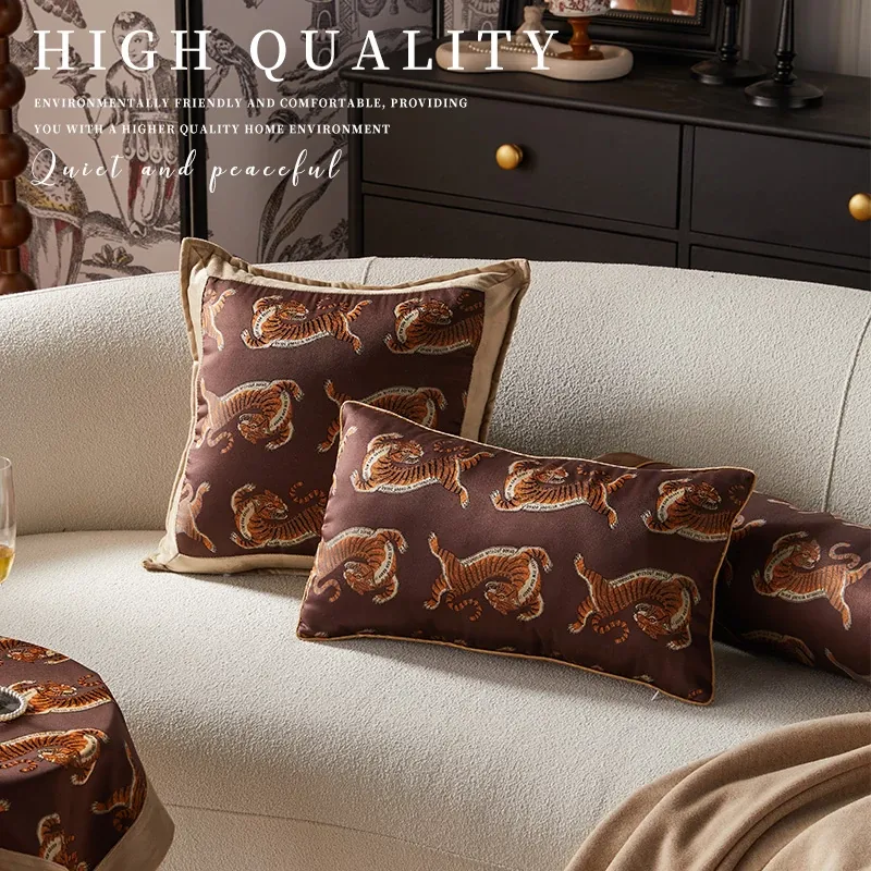 アメリカンスタイルの円柱型ソファクッション|フレンチヴィンテージ風の高級感溢れる抱き枕|スタイリッシュな虎デザインの背当てクッション|中身付きでおしゃれなインテリアに最適!