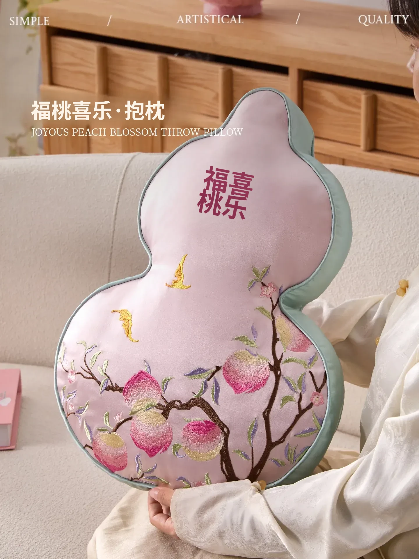 刺繍入りのひょうたんクッション|高級赤木製ソファ&ダイニングチェア用|文創風の中古風デザイン|車用&睡眠用に最適!心地よい座り心地で、リラックスしたひとときをお楽しみください。