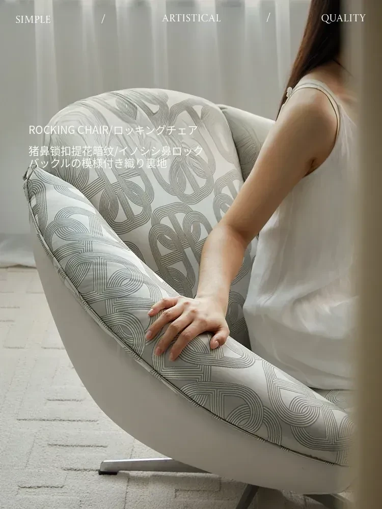 モダンでシンプルな軽奢感あふれる一人用エッグチェア。バルコニーやリビング、寝室にぴったりのリラックスできるロッキングチェア。おしゃれで心地よい時間を演出!