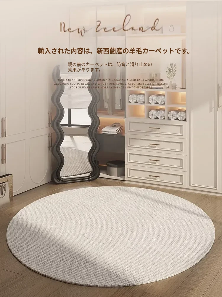 ニュージーランド産ウールクリーム風ラウンドベッドサイドカーペット - クローゼット・リビング・寝室・全身鏡用のスタイリッシュなマット!柔らかさと高級感を兼ね備えた、どんな空間にもぴったりなアイテムです。