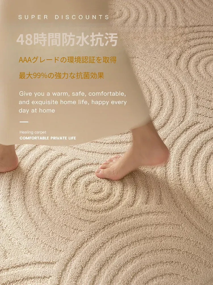 防水防汚のリビングカーペット、メンテナンス不要で汚れに強い!シングルソファやコーヒーテーブルに最適な高級感漂うライトラグ、クローゼットのマットにもぴったり!