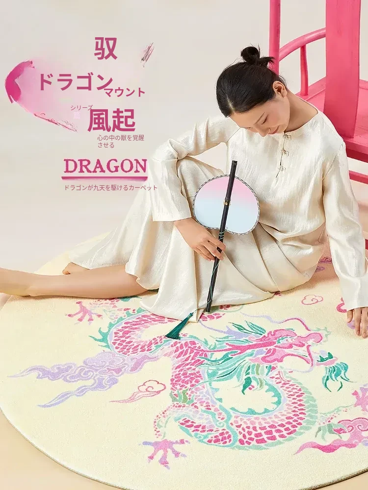 中華風情の高級感あふれる円形ラグ - 家庭用中式ミラー前ラグ、リビングルーム・ソファ・寝室床辺に最適な厚手マット。お洒落な空間を演出し、心地よいひとときを提供します!