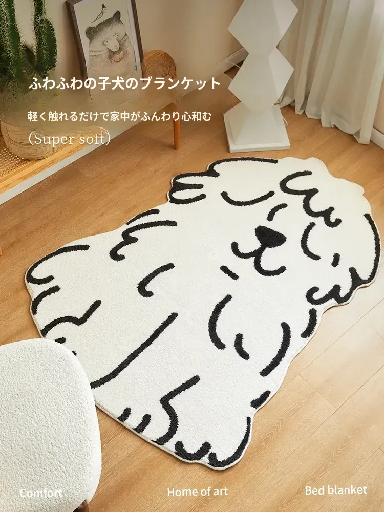 かわいいキャラクター犬のカーペット - リビング、子供部屋、ベッドサイドにぴったり!ふわふわの滑り止めマットで、遊びや読書のスペースを快適に演出。お子様の笑顔を引き出す、心温まるアイテムです!