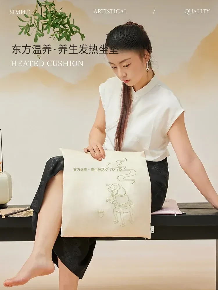 新中式健康加热座布団 - オフィスや家庭で快適な温もりを提供!小型電気ヒーター付き、艾灸効果でリラックス&美容効果も期待!
