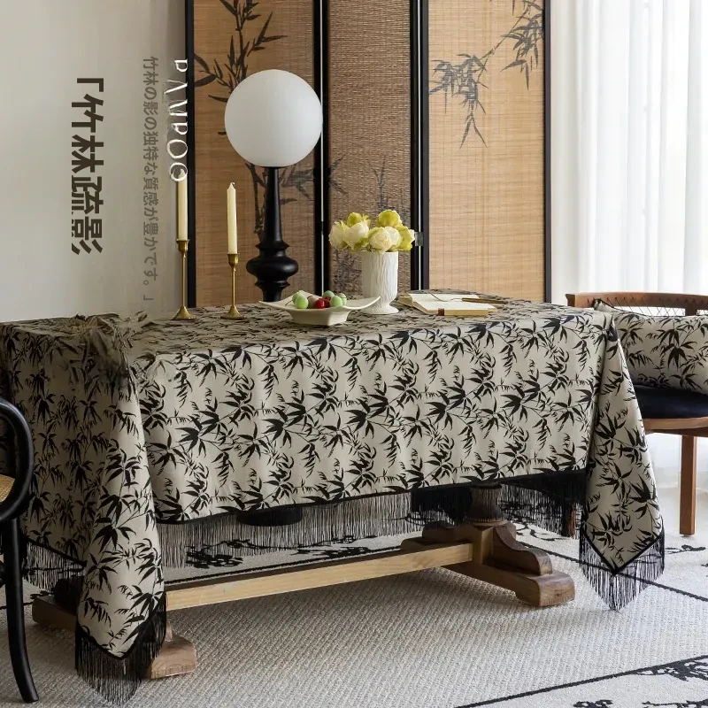 新中式純色竹製テーブルクロス - 中国風の軽奢華な高級感漂うカフェテーブル用ファブリック、エレガントな長方形デザインでおしゃれな食卓を演出!